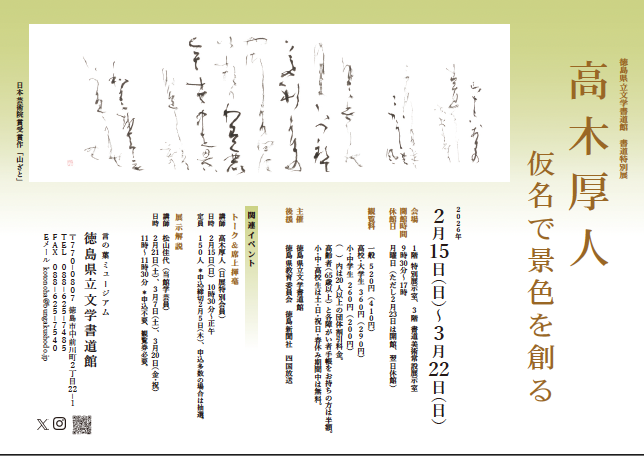 | タイトル: | 書道特別展「高木厚人 仮名で景色を創る」 |
